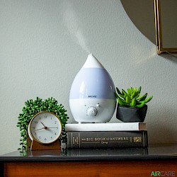 The Aria is a new steam humidifier from AIRCARE. It combines the benefits of essential oils with the incredible healing properties of true steam humidity. The easy-to-operate Aria has a small footprint, making it perfect for a bedroom humidifier. The cup in this unit can be used for either essential oils or menthol inhalants that help with cough and congestion. No filter is needed for this humidifier.