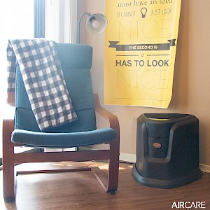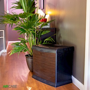 Humidifiers are beneficial year-round. That's why most AIRCARE evaporative models are made in various styles and colors, so you can leave them out and use them all the time. For this reason, the Pedestal comes in two warm earth tones, nutmeg (shown) and espresso. But what makes the Pedestal unique is that it functions like an end table. Its decorative top contains a 12 "x12" insert that can be swapped out with any other tile to match your home.